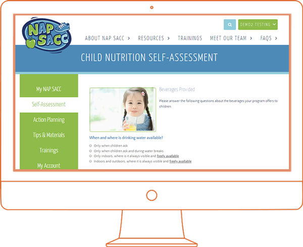 Our self-assessments help child care providers compare their practices to Go NAPSACC best-practice standards. Providers can assess their own practices in any of the Go NAPSACC modules and identify areas in need of improvement.