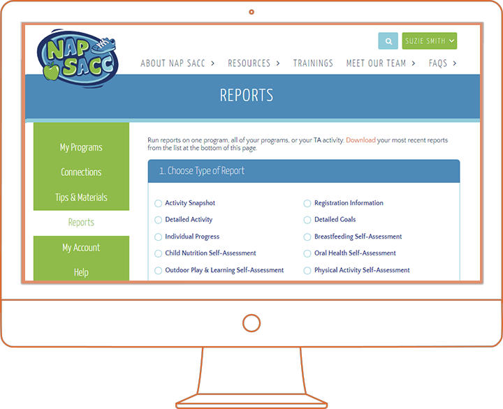 The Go NAPSACC reporting tool helps TA consultants and state partners track and report on the progress of participating programs. With just a few clicks, the tool creates customized reports showing how local child care programs’ practices compare to Go NAPSACC best practice standards and improvements made over time.